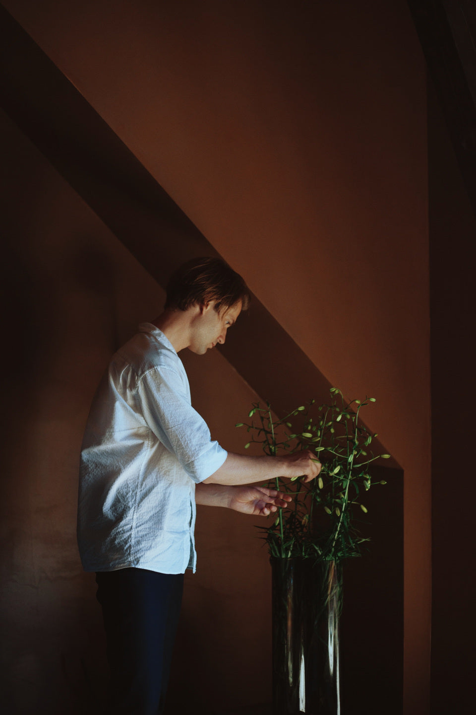 The asymmetrical silhouette of the Aer vase undulates in liquid-like waves to bring a tactile, almost ethereal quality to the mouth-blown smoke coloured glass. The sculptural design looks equally beautiful as a standalone piece or pair with other objects from the series.